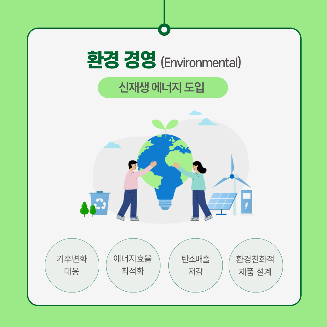 ESG에서 E인 환경에서 가장 중요한 이슈는 기후변화와 탄소배출입니다. 기업은 지속적인 비즈니스를 위해 탄소배출 절감 및 탄소 제로화를 추구해야 합니다. 또한, 자원 관리와 환경오염 완화를 위한 노력이 필수적입니다.