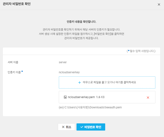 설정했던 인증키를 가져오면 이렇게 관리자 비밀번호를 확인할 수 있습니다. 이제 서버에 접속해서 관리자의 비밀번호를 바꿔보는 것까지 해보겠습니다.