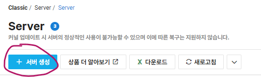 서버 생성을 클릭합니다.