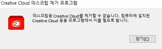 데스크탑용 Creative Cloud를 제거할 수 없습니다. 컴퓨터에서 설치된 Creative Cloud 응용 프로그램에서 이를 필요로 합니다.